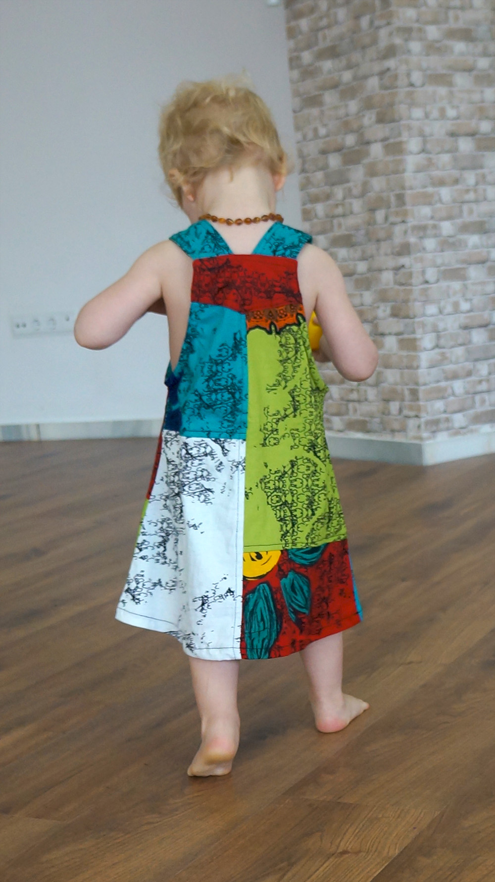 Vestido corto con tirantes abotonados, muy colorido. Lleva un bolsillo en la parte del pecho. Ideal para el verano. El material es 100% algodón y está confeccionado a mano en Nepal. Es un producto de gran calidad y tacto agradable.